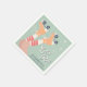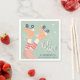 Cute sage green roller skating birthday party napkins featuring a retro-inspired illustration of pastel orange roller skates on a girl wearing red striped tube socks and "Let's Roll" in a 70's style script. Add her name dark teal blue typography.