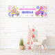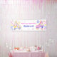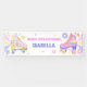 A bright and colourful retro birthday banner, ideal for a roller skating or roller disco birthday. This design features two roller skates and flower power flowers with space for your text in the middle. See the whole matching party collection!