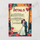 This elegant comic book-style wedding enclosure card is perfect for a modern wedding. The retro design features a vintage bride and groom illustration and black calligraphy on a comic book-themed background.