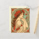 Art Nouveau illustration. A lady with red flowers, in a setting decorated with floral decorative motifs.