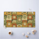 Nostalgic rotary phone pattern in geometric style with classic 70s communication colors. Vintage telephone meets analog era memories.