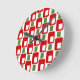 This clock is covered with red and green retro rectangles.