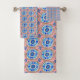 Retro Round Daisy Tile Pattern Blue Peach Bath Towel Set