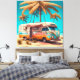 Retro RV under Palm Trees vintage art.