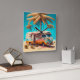 Retro RV under Palm Trees vintage art.