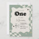 Retro Sage Green Checkered Groovy One 1st Birthday Invitation