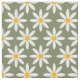 Sage green retro vector daisies floral pattern. Small white daisies on sage green.
