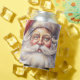 Can cooler with a vintage style illustration. A portrait of Santa with his big white beard wearing his classic traditional red Santa hat.