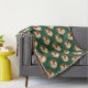A portrait of Santa is repeated on a forest green background on this delightful Holiday pattern blanket. Santa's twinkling blue eyes sparkle underneath his traditional red hat and behind his full white beard. Pine needles frame the portrait. Beautiful and useful for the Holiday Season!
