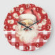 Retro Santa Claus Red And White Plaid Christmas Large Clock