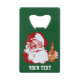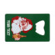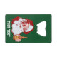 Santa Claus works hard at Christmas time and sometimes the milk and cookies don't cut it. So, he takes a break and has a nice beer. This funny vintage Santa credit-card bottle opener design shows Old Saint Nick holding a beer bottle. Santa has been recolored and the beer has been added to make this an original design for your holiday fun. Design appears on both sides. Green background is customisable. Easily add your own text using the template.