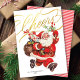 This festive non-photo holiday card features a vintage illustration of Santa. The faux gold script greeting on the front of the card says "Cheers". There is space for your names and the year. On the back of the card is a festive red and white stripe pattern which can be remove/edited... you can also add another photo and/or additional text to the back.