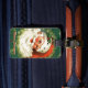 The Retro Santa Luggage Tag is a great way to add holiday spirit to your holiday travels! Also makes a great gift! The retro design on the front features Santa's smiling face on a dark green background. The text reads, "Merry Christmas." The back of the luggage tag has a red plaid design, with the text of your choice. Customise the text on the front and back of the design as desired. The red plaid background on the back of the luggage tag is also optional--you can delete if desired.