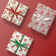 three sheets of holiday wrapping paper adorned in unique vintage and adorable graphics of santa claus in seamless pattern print format. each of the three sheets includes a different retro design