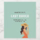An elegant last rodeo bachelorette weekend personalised wine bottle label with a vintage theme, featuring a poster style illustration of a beautiful woman wearing a hat, in a flirty pose, with a vintage orange pink, green and dark sienna colour scheme. A fun bachelorette weekend party custom wine label for a bride who loves retro and vintage. Matching items available.
