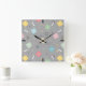 Retro Scattered Atomic Star Explosions Pattern Square Wall Clock