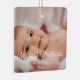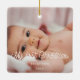 This is a lovely ornament, and great that you personalise the back with details of birthday, weight, etc.. My only tiny disappointment is the "My First" doesn't stand out very well on the background. More than happy with the printing of the photo and the writing on the back.