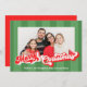 This design features a merry Christmas, multi-photo collage card, with red and green, retro typography, a simple script calligraphy style with a cute fun whimsical, family photo template, a minimalist, bold lettering, with a vintage holiday style.