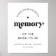 Encourage your guests to share their favourite bride-to-be memory with this poster sign, featuring stylish retro script and editable text. Easily add your own details by clicking on the "personalise" option.