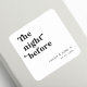 Add a playful vintage touch with this retro script square sticker for your The Night Before rehearsal dinner. Featuring bold typography with a nostalgic twist, it’s perfect for sealing envelopes, decorating favours, or adding charm to your pre-wedding celebration. Fully customisable with names or initials.