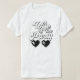Cute bachelorette party t-shirt for the bride featuring "Wife of the Party" in a large retro 70's style script and heart-shaped sunglasses. Coordinating "Life of the Party'" t-shirts are available for the bachelorette group.