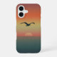 Stylized silhouette of a seagull flying over the sea in a soothing vintage mood.