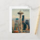 Retro Seattle Skyline Watercolor Postcard Art