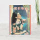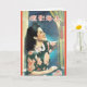 Vintage movie magazine cover from Shanghai, China in the early 20th Century! These painted advertisements showcased a blend of Eastern and Western sensibilities. This beautiful retro advertising greeting card features a beautiful movie starlet in a floral 40s style dress, drawing the curtain aside in her window with a red tassel.