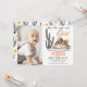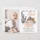 Cute boy's western themed first birthday invitation featuring a cactus desert landscape, rope style word one, hand drawn horseshoe, and a photo on the side. This wild west boy's 1st birthday invitation also features a photo and text on the back and is ideal for a western themed first birthday party.