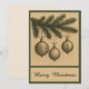 Send timeless holiday wishes with this elegant Merry Christmas card featuring a minimalist gold and green design. The vintage illustration of a Christmas tree branch with ornaments creates a rustic yet chic look. Perfect for those who love old-fashioned charm, botanical details, and refined typography. Celebrate a merry and bright season with a festive card that combines simplicity and elegance in one unique design.