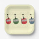 Retro Ski Gondola Lift Skiers Cream Paper Plate