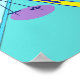 Brrr... This Retro Ski Vacation Poster will have you looking around for a Saint Bernard with a cask of brandy. The mid century modern cartoon drawing features a glamourous couple cooped up in a colourful ski chalet with a magnificent view. The room has a turquoise floor and purple walls. Hey, it's the 60s! Floor to ceiling windows reveal snow covered mountains, a turquoise sky with light blue clouds, and the silhouettes of happy people whizzing by in ski lift gondolas. Inside the room, we see an olive green, cone fireplace with a glowing fire. Tossed on the floor are two yellow skis next to ski poles. In the centre of the room, a handsome man with black hair is wearing blue pants and a green turtleneck sweater. He is carrying a tray of martinis. One arm is outreached, offering a martini to a blonde woman's waiting hand. The woman, is sitting in a red, egg chair. She is wearing navy blue pants and a hot pink sweater. Please excuse her for not getting up, but she has a cast on one leg!