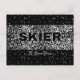 This unique design features the word "SKIER" in bold, black letters against snowing background. Below the main text, there is Japanese katakana text that translates to "skier." This retro-inspired design is perfect for skiing enthusiasts and fans of Japanese culture.