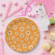 This is cute happy smiling retro hippie white flowers pattern on orange background. It's great looking paper plate for kids birthday parties