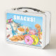 Crafted from sturdy metal, this lunchbox is built to last and designed to make an impression. With a secure latch to keep everything safely inside, it’s ideal for carrying sandwiches, snacks, fruit, or a well-earned stash of after-lunch treats. The vintage-looking imagery transports you straight into a dreamy old-fashioned candy shop or classic diner, filled with colourfully frosted doughnuts, gooey cookies, swirls of ice cream, and bright, cheerful candy that looks too good to resist. The bold “SNACKS!” lettering above ties it all together, announcing your love of sweets with retro pride and playful energy.