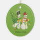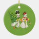 Retro Snowcouple on Green Background Ceramic Tree Decoration