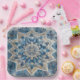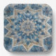 A stunning geometric pattern forms a snowflake shape featuring shades of blue and beige