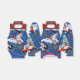 Wheee! These adorable Snowmen are having a ball, enjoying favourite winter sports in the drifting, falling snow. The red, white & light blue figures stand out on the Cobalt Blue background. Silvery Magen David float w/the falling snow w/ golden, waving greetings of "Happy Hanukkah". Sized perfectly for Chocolate Hanukkah Gelt or small dreidels, you can personalise the White & Blue text on handle.