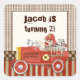 Retro Sock Monkey, Firefighter Boy Birthday Square Sticker