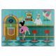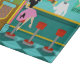 Serve up something special with this Retro Soda Fountain Cutting Board. The minimalist art, cartoon drawing design features the interior of the coolest spot in town. It's a 1950's soda fountain, in all of its kitschy glory! Against the backdrop of an aqua wall, we can see posters advertising the specialities of the house. One poster shows a hamburger and bottle of pop for the bargain price of 15 cents. The other poster shows two scoops of ice cream in a sugar cone for a mere 5 cents. With prices like these, it must be difficult to watch your waistline! A most competent soda jerk is manning the teal counter with yellow accents. The young man with the strong work ethic is holding an ice cream cone with a single scoop of lemon yellow ice cream--although, to be fair, it could be pineapple! The clean-cut lad is wearing a pristine, white shirt with a black, bow tie and a white hat with red accents. On the opposite side of the counter, we see three red and chrome bar stools. Perched on one of the stools is a blonde teenybopper whose mouth is surely watering. It's unclear if her mouth is watering over the ice cream cone that is headed her way or the industrious young man who is serving it. She is wearing a pink poodle skirt and a form fitting black top. Her yellow locks are pulled back in a classic ponytail. Next to this cutie of a customer there is a colourful, classic jukebox, which features brown, wood grain, panelling and colourful neon lights. Better than that, it is sure to feature all of the greatest rock and roll hits of the time! The floor of this mid century modern ice cream parlour is an aqua and teal, chequerboard pattern that is just screaming for someone to try all of the latest dance moves.