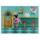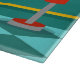 Serve up something special with this Retro Soda Fountain Cutting Board. The minimalist art, cartoon drawing design features the interior of the coolest spot in town. It's a 1950's soda fountain, in all of its kitschy glory! Against the backdrop of an aqua wall, we can see posters advertising the specialities of the house. One poster shows a hamburger and bottle of pop for the bargain price of 15 cents. The other poster shows two scoops of ice cream in a sugar cone for a mere 5 cents. With prices like these, it must be difficult to watch your waistline! A most competent soda jerk is manning the teal counter with yellow accents. The young man with the strong work ethic is holding an ice cream cone with a single scoop of lemon yellow ice cream--although, to be fair, it could be pineapple! The clean-cut lad is wearing a pristine, white shirt with a black, bow tie and a white hat with red accents. On the opposite side of the counter, we see three red and chrome bar stools. Perched on one of the stools is a blonde teenybopper whose mouth is surely watering. It's unclear if her mouth is watering over the ice cream cone that is headed her way or the industrious young man who is serving it. She is wearing a pink poodle skirt and a form fitting black top. Her yellow locks are pulled back in a classic ponytail. Next to this cutie of a customer there is a colourful, classic jukebox, which features brown, wood grain, panelling and colourful neon lights. Better than that, it is sure to feature all of the greatest rock and roll hits of the time! The floor of this mid century modern ice cream parlour is an aqua and teal, chequerboard pattern that is just screaming for someone to try all of the latest dance moves.