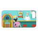 Serve up something special with this Retro Soda Fountain iPhone 6 Case. The minimalist art, cartoon drawing design features the interior of the coolest spot in town. It's a 1950's soda fountain, in all of its kitschy glory! Against the backdrop of an aqua wall, we can see posters advertising the specialities of the house. One poster shows a hamburger and bottle of pop for the bargain price of 15 cents. The other poster shows two scoops of ice cream in a sugar cone for a mere 5 cents. With prices like these, it must be difficult to watch your waistline! A most competent soda jerk is manning the teal counter with yellow accents. The young man with the strong work ethic is holding an ice cream cone with a single scoop of lemon yellow ice cream--although, to be fair, it could be pineapple! The clean-cut lad is wearing a pristine, white shirt with a black, bow tie and a white hat with red accents. On the opposite side of the counter, we see three red and chrome bar stools. Perched on one of the stools is a blonde teenybopper whose mouth is surely watering. It's unclear if her mouth is watering over the ice cream cone that is headed her way or the industrious young man who is serving it. She is wearing a pink poodle skirt and a form fitting black top. Her yellow locks are pulled back in a classic ponytail. Next to this cutie of a customer there is a colourful, classic jukebox, which features brown, wood grain, panelling and colourful neon lights. Better than that, it is sure to feature all of the greatest rock and roll hits of the time! The floor of this mid century modern ice cream parlour is an aqua and teal, chequerboard pattern that is just screaming for someone to try all of the latest dance moves.