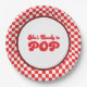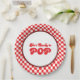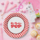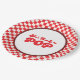 Serve up fun with these" Retro Soda Pop baby shower paper plates, featuring a retro red chequerboard background. Perfect for a soda pop baby shower theme, these disposable baby shower plates add vintage diner charm to your celebration. Ideal for retro baby shower tableware, 1950s-inspired party supplies, and festive baby shower decorations.