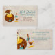 Cute retro style soup, stew, stock or cooking pot with ladle spill and aged background on this business card home cooking style personal chef, cooking classes, catering and other food or culinary service.