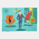 Honey, I'm home! This Retro Space Age Cartoon Couple Kitchen Towel will have you feeling envious of the cartoon couple on a kitchen towel! The design features a turquoise background with teal bricks and an olive green, cone fireplace. A sleek, black cat is sitting on a sleek orange chair. There is a teal, starburst wall clock and a two-tier pendant lamp in shades of yellow, blue and black. Front and centre, there is a distinguished, martini-swilling businessman in a blue suit and orange tie. To his side, his blonde bombshell of a trophy wife is wearing a red wiggle dress and holding a tray of martinis. Va-va-va-voom! This makes a fun wedding or housewarming gift!