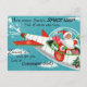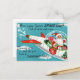 This snazzy Christmas postcard features a vintage illustration of Santa Claus delivering presents in his spaceship. The perfect fun card for fans of Santa and all things retro!