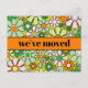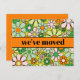 Retro Spring Floral New Address / We've Moved card. Cute, springy, cheerful flowers with a fun vintage aesthetic and a 1960s 1970s vibe, in pretty, bright pastel colours, with orange. Text can be customised and personalised. By Kierkegaard Design Studio.