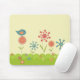 Cute retro style flowers in the garden with a bird perched on one of the flowers