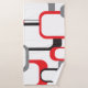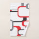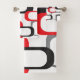 A fun retro style bath towel set with a cool square pattern done in red, black, grey and white.