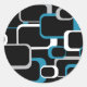 Retro Squares Pattern Blue Grey White Black Classic Round Sticker